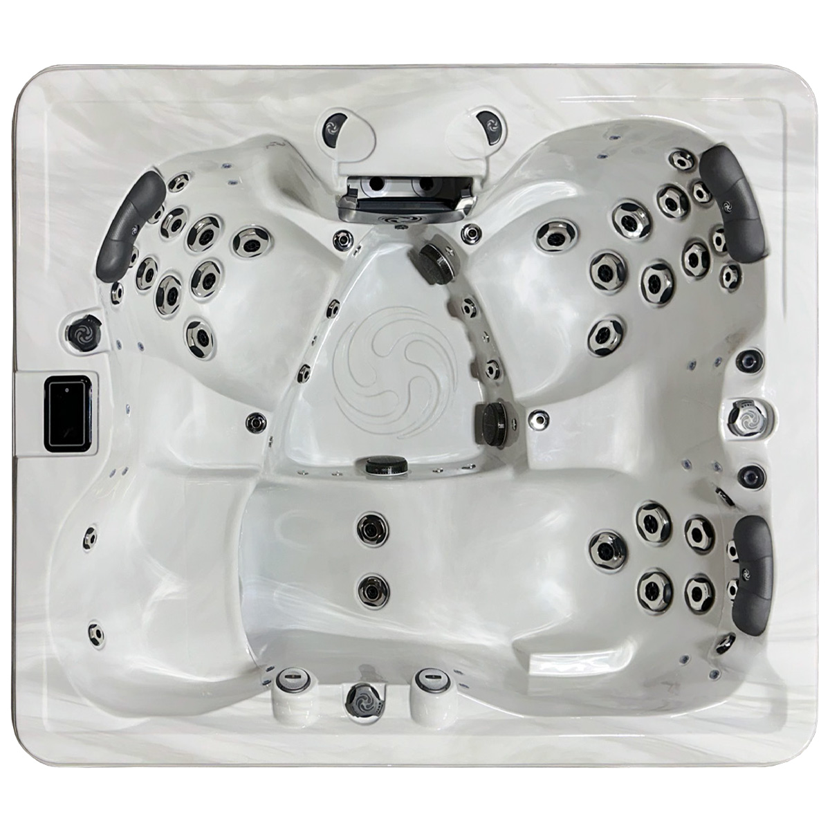 Chromatherapy lighting, illuminated drink holders, and dual Aurora Cascade Water Features create a serene, spa-like atmosphere. The digital touch screen control, ergonomic performance seating, and TheraMAAX™ stainless steel jets work in harmony to deliver comfort and convenience with every soak. Optional upgrades such as CleanZone™ water purification, Bluetooth audio, and AeroMAAX™ air jets let you further customize your perfect soak.