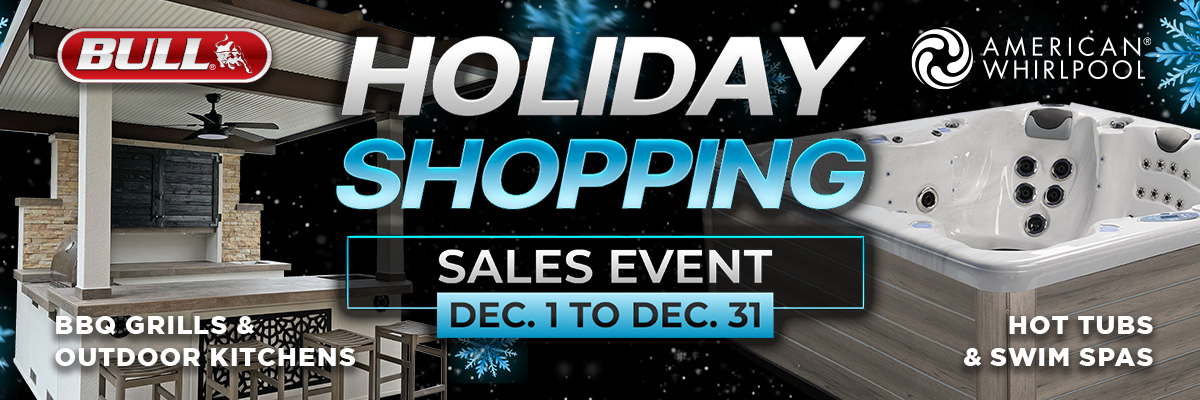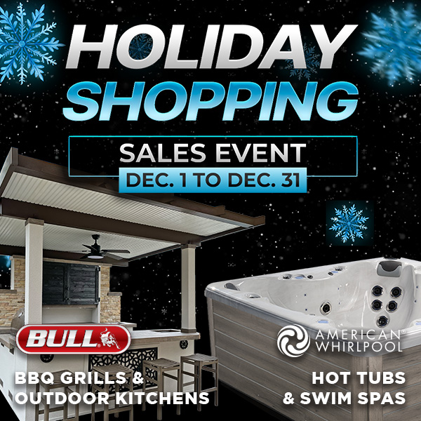 Celebrate the season with our biggest year-end savings on hot tubs, swim spas, BBQ grills, and outdoor kitchens. Enjoy exclusive holiday pricing on select 2025 models — available for a limited time across all showrooms.